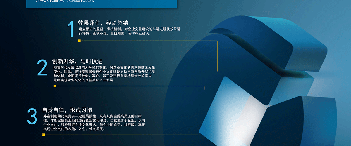 隨著建設(shè)銀行從國有商業(yè)銀行向股份制商業(yè)銀行轉(zhuǎn)軌,對企業(yè)文化有著新的要求和期盼。安徽省分行率先響應(yīng)總行號召實施CCS策劃,解決轉(zhuǎn)軌后的文化建設(shè)需求。比如:如何讓員工不限于本位主義,具有追求完美的精神?如何進一步強化務(wù)實觀念,重視內(nèi)部人才的培養(yǎng)?如何增強員工間的互相認(rèn)可和尊重,形成整體戰(zhàn)斗力?如何更加注重員工的鼓勵,促進民主的氛圍的營造?