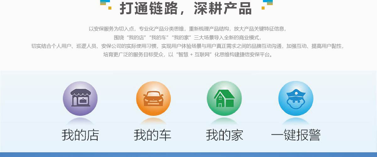 4.提煉出“我的店、我的車、我的家”品牌互動理念,打造智慧+互聯(lián)網安保平臺