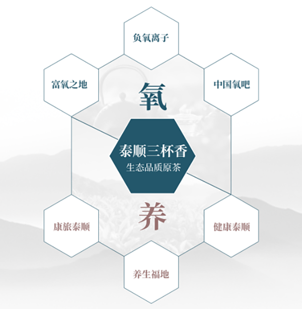 根據(jù)泰順縣名稱由來——“國泰民安,人心歸順”等寓意美好的詞匯,從中挖掘“泰順三杯香”的順文化。品泰順之茶,享泰順人生;富養(yǎng)好茶,泰順人生。