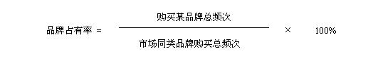 有人習慣于使用企業(yè)品牌滲透率來表示。計算企業(yè)品牌占有率的原因有三:一是市場上雖然每一企業(yè)品牌都有標價,但消費者每次選擇不同的企業(yè)品牌或品種,每次支出的費用不同,消費者心理對每次費用留下的印象不深也不一定精確,而消費者對于購物的次數(shù)一般記憶清楚;二是有些大件產(chǎn)品,消費者可能只購買了一件,計算累計市場占有率不方便,研究者可以換一種計算方式,從消費者群體購買目標企業(yè)品牌與競爭企業(yè)品牌的頻次中統(tǒng)計各企業(yè)品牌之間的占有率;三是從企業(yè)品牌占有率的分析入手,容易發(fā)現(xiàn)各營銷要素的效果,其計算公式如下: