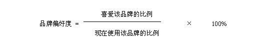 由消費者喜愛該企業(yè)品牌的比率,除以使用該企業(yè)品牌的比率,即消費者對該企業(yè)品牌的偏好度。這個數(shù)值越高,表示喜愛該企業(yè)品牌的消費者真正地實施了購買行為;這個數(shù)值越低,表示喜愛該企業(yè)品牌的消費者中真正購買該企業(yè)品牌的人較少,可能因為銷售渠道方面存在的問題或產(chǎn)品的形象良好而產(chǎn)品的屬性沒有滿足消費者的需要等。