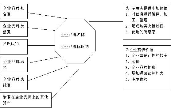 企業(yè)品牌資產(chǎn)是一種超載產(chǎn)品有形實(shí)體以外的價(jià)值部分。企業(yè)品牌資產(chǎn)的價(jià)值概括起來可以分為兩類:為消費(fèi)者提供價(jià)值和為企業(yè)提供價(jià)值。