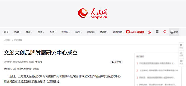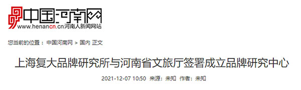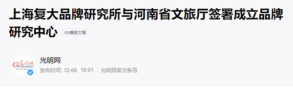 近日,上海復大品牌研究所與河南省文化和旅游廳簽署合作成立河南省文旅文創(chuàng)品牌發(fā)展研究中心,推進河南省全域旅游主題形象塑造和品牌建設。人民網(wǎng)、光明網(wǎng)、中國旅游網(wǎng)等權威媒體關注報道。