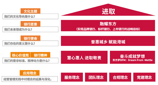 項(xiàng)目組從文化訴求、發(fā)展構(gòu)想、文化現(xiàn)狀、省聯(lián)社傳承四大方面,綜合思考東方農(nóng)商銀行的文化體系構(gòu)建,既要解決當(dāng)前的訴求,又能對未來的發(fā)展起到精神引領(lǐng)作用。