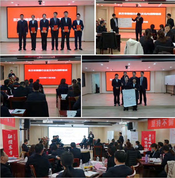 文化是火種,文化內(nèi)訓(xùn)師就是播種人。為了更好地進(jìn)行文化宣導(dǎo),引領(lǐng)銀行文化不斷更新發(fā)展、與時俱進(jìn),項(xiàng)目組以內(nèi)容豐富、形式多樣的培訓(xùn)課程,為東方農(nóng)商銀行培養(yǎng)了一批熟知、能用、善用文化的內(nèi)訓(xùn)人才,讓他們帶著文化“火種”,撩起東方農(nóng)商銀行熊熊的進(jìn)取之火。
