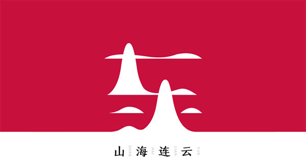采用現(xiàn)代的扁平化設(shè)計(jì)手法來演繹山海連云,日出東方的意境。凸起的兩山穿出云海,對應(yīng)的是連云港著名的孔望山和花果山,既有意境又具有識別度。
