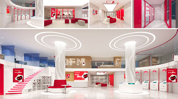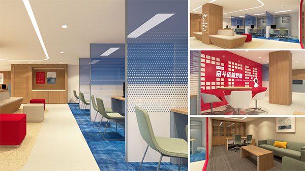 除此之外,項(xiàng)目組在為東方農(nóng)商銀行進(jìn)行營業(yè)空間設(shè)計(jì)時,還在設(shè)計(jì)中深度植入品牌色彩與IP形象,能夠給客戶留下深刻的品牌印象的同時,也有效區(qū)別于其他金融機(jī)構(gòu)。