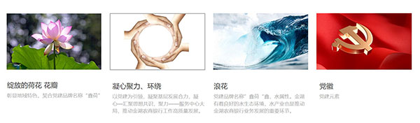 項(xiàng)目組將這兩種文化因子融合到黨建品牌的策劃設(shè)計(jì)中,既體現(xiàn)金湖農(nóng)商銀行服務(wù)地方經(jīng)濟(jì)發(fā)展的責(zé)任,也時(shí)刻警醒著作為黨員必須堅(jiān)守廉潔自律的準(zhǔn)則。經(jīng)內(nèi)外部多次探索論證后,項(xiàng)目組將金湖農(nóng)商銀行黨建品牌命名為“鑫荷”,代表了對(duì)黨的忠誠與事業(yè)的追求,是金湖農(nóng)商人對(duì)黨的莊嚴(yán)承諾。