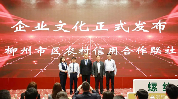 柳州市區(qū)農(nóng)信社領(lǐng)導(dǎo)班子成員共同開啟企業(yè)文化發(fā)布儀式