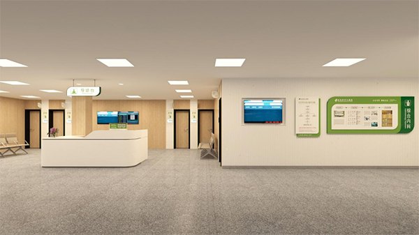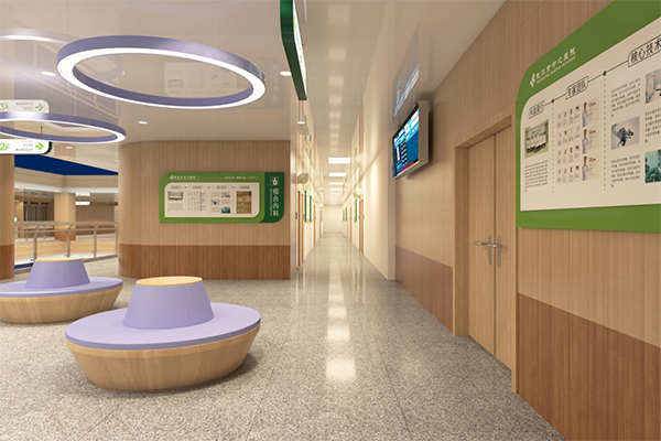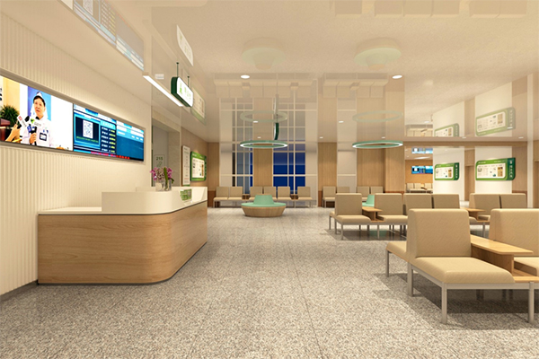 通過(guò)將醫(yī)院文化理念和元素融入環(huán)境中,形成濃厚的文化氛圍,重新激活老院區(qū)的文化活力,激發(fā)員工的文化自信和“百年醫(yī)院”自豪感。選取代表生命力的綠色作為品牌主色調(diào),輔以大面積自然原木色,打造雅致寧?kù)o的、人文性強(qiáng)的空間環(huán)境,提升患者就醫(yī)體驗(yàn)和社會(huì)口碑。