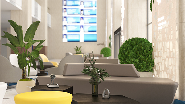 分支空間如候診區(qū)、診室、過(guò)道等,采用大面積的米白色,讓整個(gè)空間更加柔和溫馨,局部則沿用銅色和綠色點(diǎn)綴。銅色代表自然、淵博、厚重,表達(dá)醫(yī)院歷史精神在空間中沉淀和延續(xù)。綠色代表生命和活力,在空間中以綠植和醫(yī)院標(biāo)識(shí)進(jìn)行空間點(diǎn)綴和視覺(jué)點(diǎn)睛。