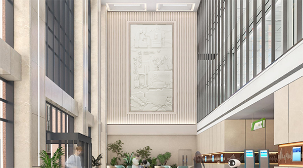 在材料的使用和制作方面也進(jìn)行了創(chuàng)新。項(xiàng)目組比對(duì)了從全國(guó)范圍搜尋到的幾十種材料,從中選擇健康綠色、質(zhì)感好、使用壽命長(zhǎng)、性?xún)r(jià)比高的材料應(yīng)用于各種創(chuàng)意設(shè)計(jì),并大面積使用漢白玉、大理石,立體呈現(xiàn)武漢市中心醫(yī)院的文化內(nèi)涵,傳達(dá)百年醫(yī)院的歷史厚重感,讓整體視覺(jué)呈現(xiàn)更具沖擊力和美感。精心挑選搭配綠植,創(chuàng)造天然、無(wú)害的綠色醫(yī)療環(huán)境和良好的室內(nèi)外自然生態(tài)綠化。