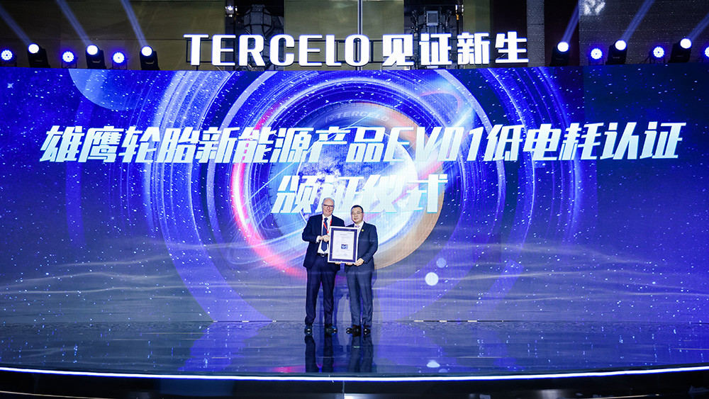 本次發(fā)布會共發(fā)布了9款產(chǎn)品以滿足國際市場個性化的需求,力求為全球客戶帶來更加安全舒適的使用體驗。其中的新能源產(chǎn)品TAMIR EV01在與國際品牌的對比測試中,以突出的優(yōu)勢榮獲德國TUV萊茵低電耗認證。在發(fā)布會最后,TUV德國萊茵技術(shù)(上海)首席運營官LUTZ FRANKHOLZ為雄鷹輪胎頒發(fā)了低能耗測試認證證書。這表明雄鷹的硬核技術(shù)得到了一流國際機構(gòu)的肯定,也是雄鷹輪胎作為民族實業(yè)品牌翱翔世界的有力背書。
