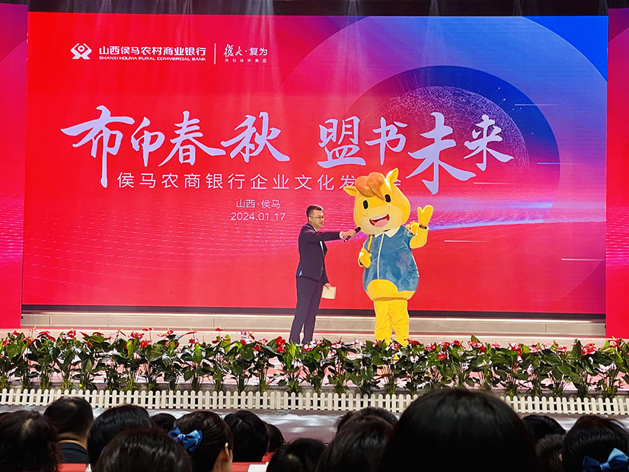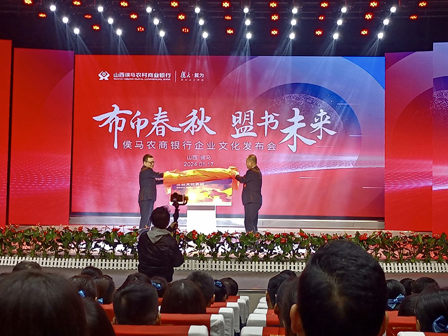 1月17日,侯馬農(nóng)商銀行召開了“布幣春秋,盟書未來”為主題的企業(yè)文化發(fā)布會(huì)。侯馬農(nóng)商銀行、新田村鎮(zhèn)銀行員工代表及復(fù)為策劃設(shè)計(jì)集團(tuán)項(xiàng)目組代表、媒體記者等出席了發(fā)布會(huì)。侯馬農(nóng)商銀行文化理念、超級(jí)IP、形象KV等一系列企業(yè)文化要素發(fā)布,標(biāo)志著侯馬農(nóng)商銀行全面邁向以企業(yè)文化為抓手,加速創(chuàng)新驅(qū)動(dòng),快速形成新質(zhì)生產(chǎn)力的新征程。