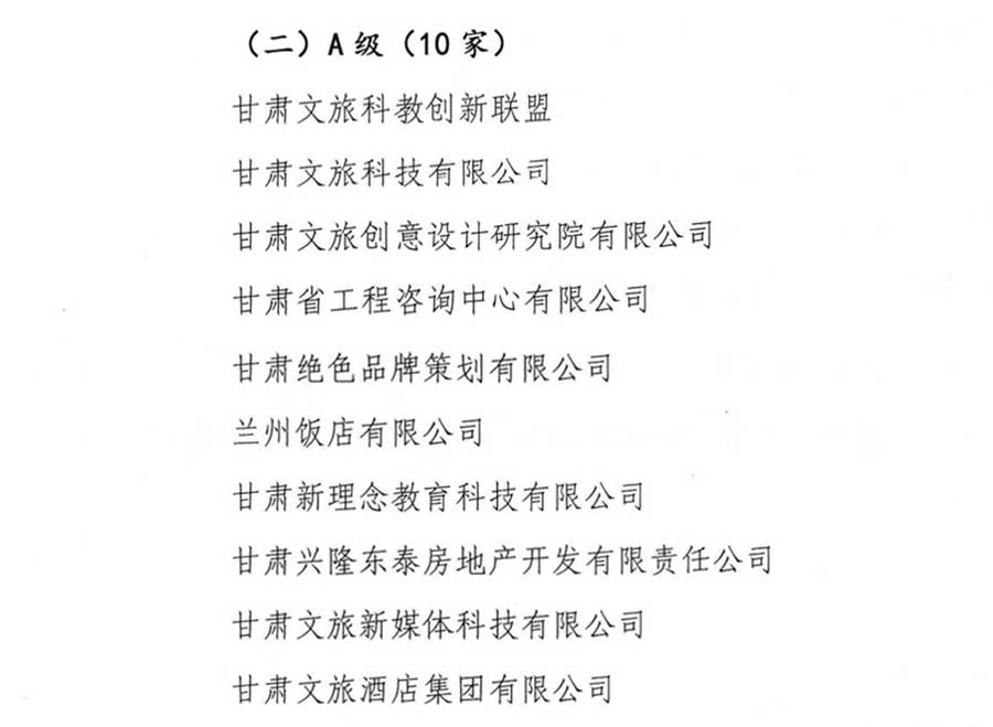 近日,甘肅省文旅產(chǎn)業(yè)集團(tuán)通報(bào)了系統(tǒng)內(nèi)38家單位2023年度綜合考核結(jié)果。甘肅絕色品牌策劃有限公司憑借出色的綜合實(shí)力,位列甘肅省文旅產(chǎn)業(yè)系統(tǒng)2023年度A級(jí)前五。