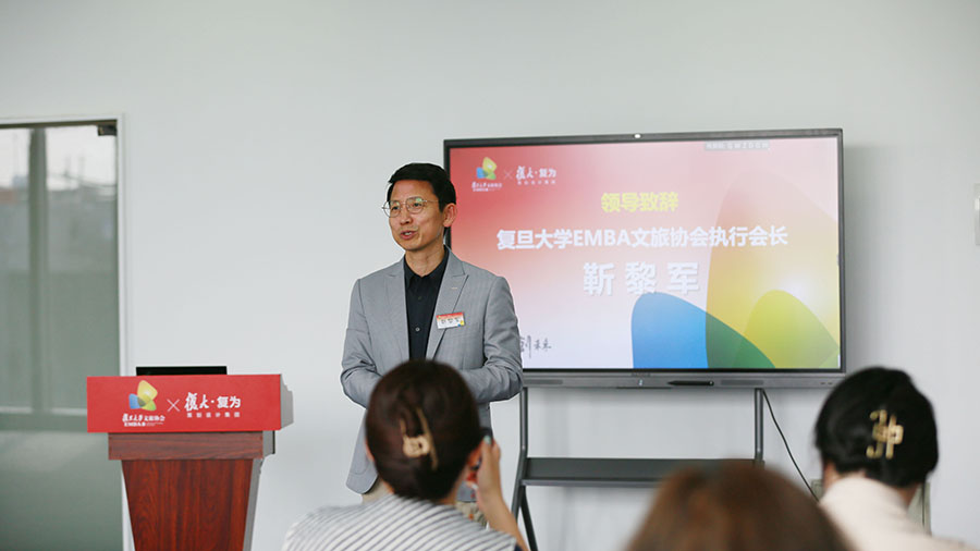主題活動在復(fù)旦大學(xué)文旅協(xié)會執(zhí)行會長靳黎軍先生的致辭中拉開帷幕。復(fù)旦大學(xué)文旅協(xié)會是在復(fù)旦大學(xué)EMBA理事會的指導(dǎo)下組建成立,會員包括同程旅行集團、上海航空國際旅游集團、上海華養(yǎng)健康管理集團、復(fù)為策劃設(shè)計集團等100多家校友單位。