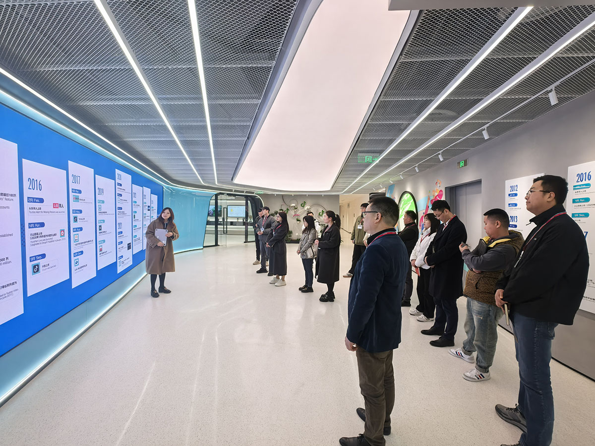 抵達(dá)字節(jié)跳動上??偛亢?,復(fù)為團(tuán)隊受到了熱情接待。在工作人員的引領(lǐng)下,參觀了充滿科技感與創(chuàng)新氛圍的辦公環(huán)境,零距離感受字節(jié)跳動的發(fā)展歷程、企業(yè)文化、抖音集團(tuán)以及在短視頻、直播等領(lǐng)域取得的成就。深刻感受到了引領(lǐng)行業(yè)潮流的科技企業(yè)的獨特魅力。