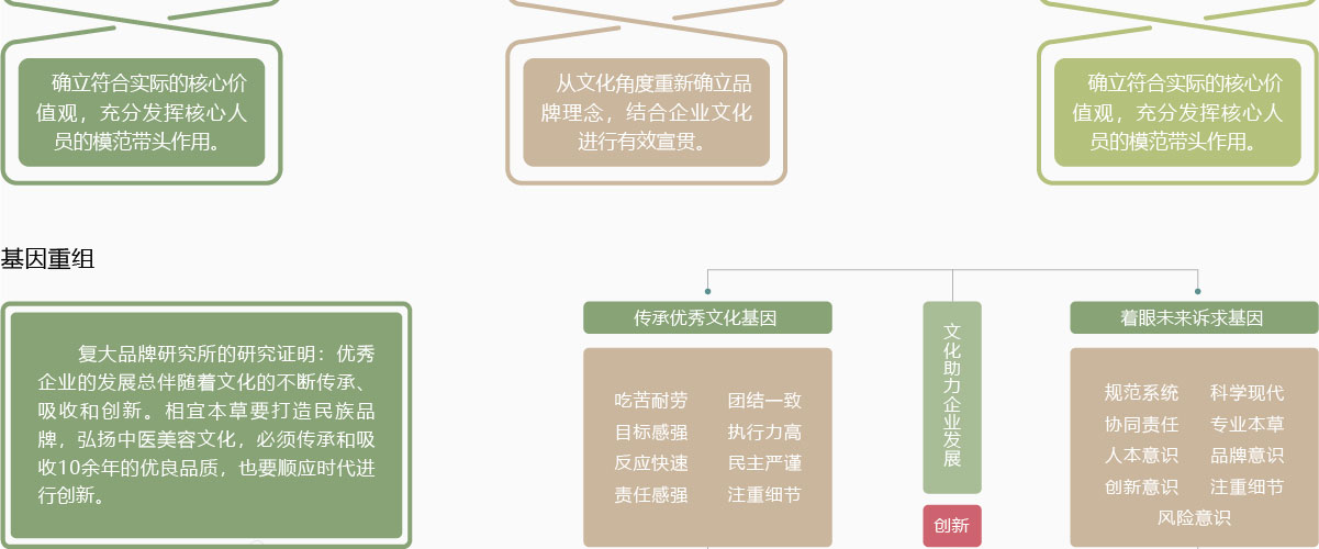 1.挖掘品牌基因,對品牌體進(jìn)行梳理、解構(gòu)、重組,規(guī)劃出最契合品牌價值的形象體系
